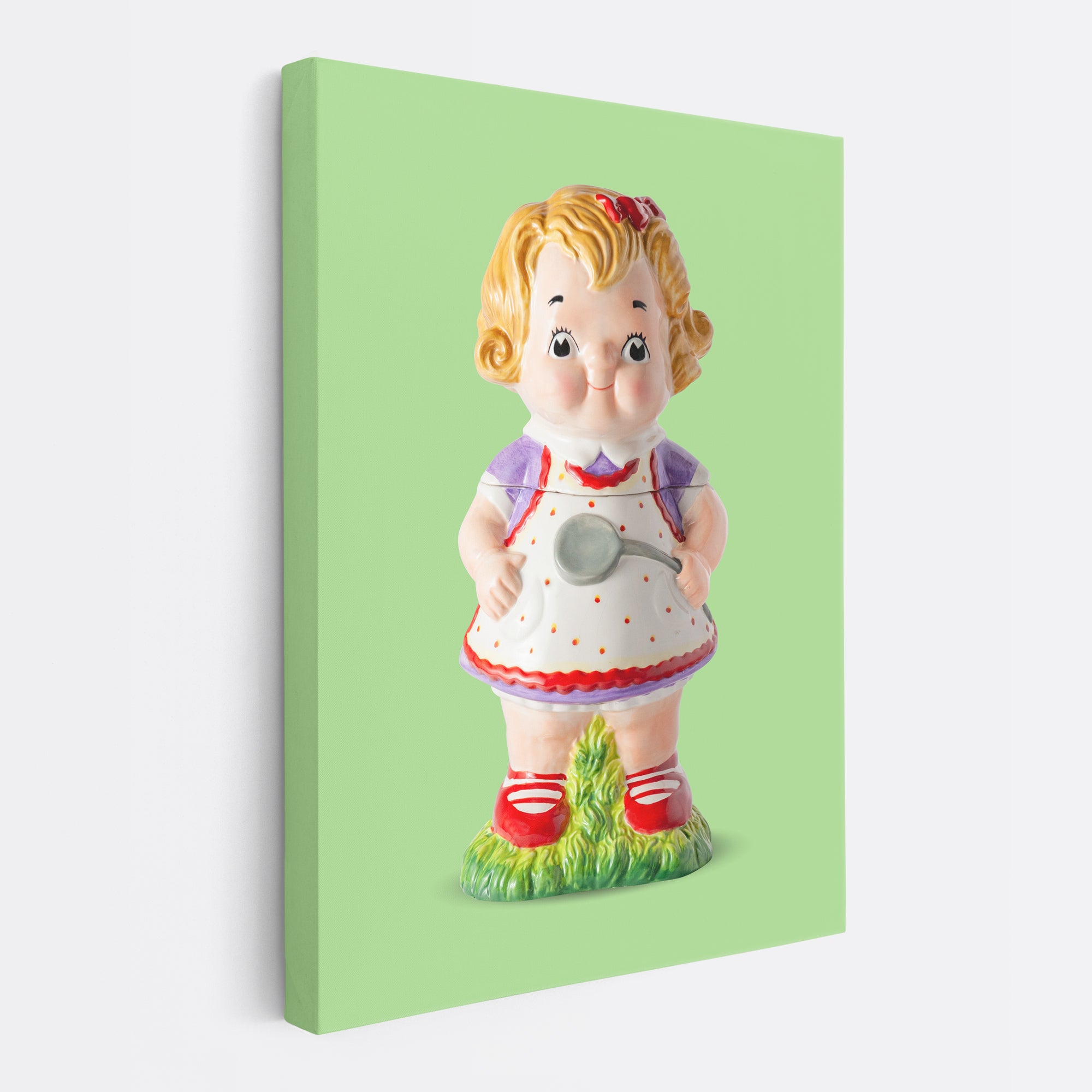 Although I own a dozen cookie jars that are commercial, for Baby Art Mart I preferred non-commercial images. How wonderful for little ones to put their own imprint on wall art in their rooms. That said, I couldn’t resist Campbell because she is too cute for words. She is the little friend of the Campbell Soup boy, but she’s not as well known. She will brighten up bedrooms or playrooms.
