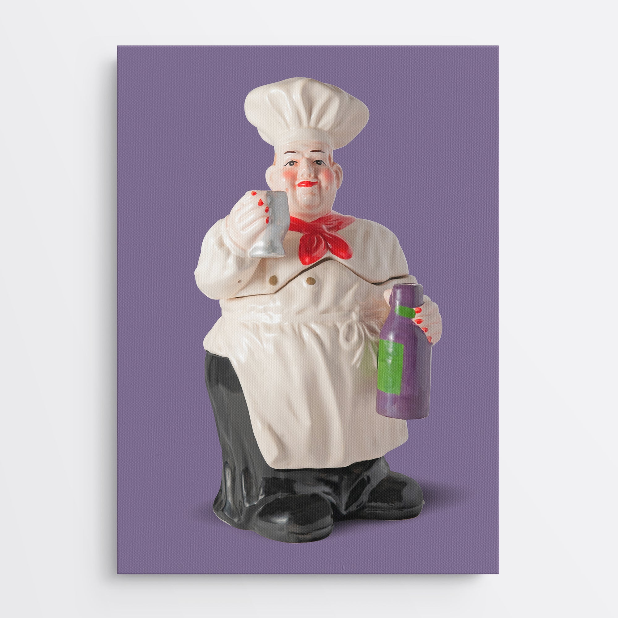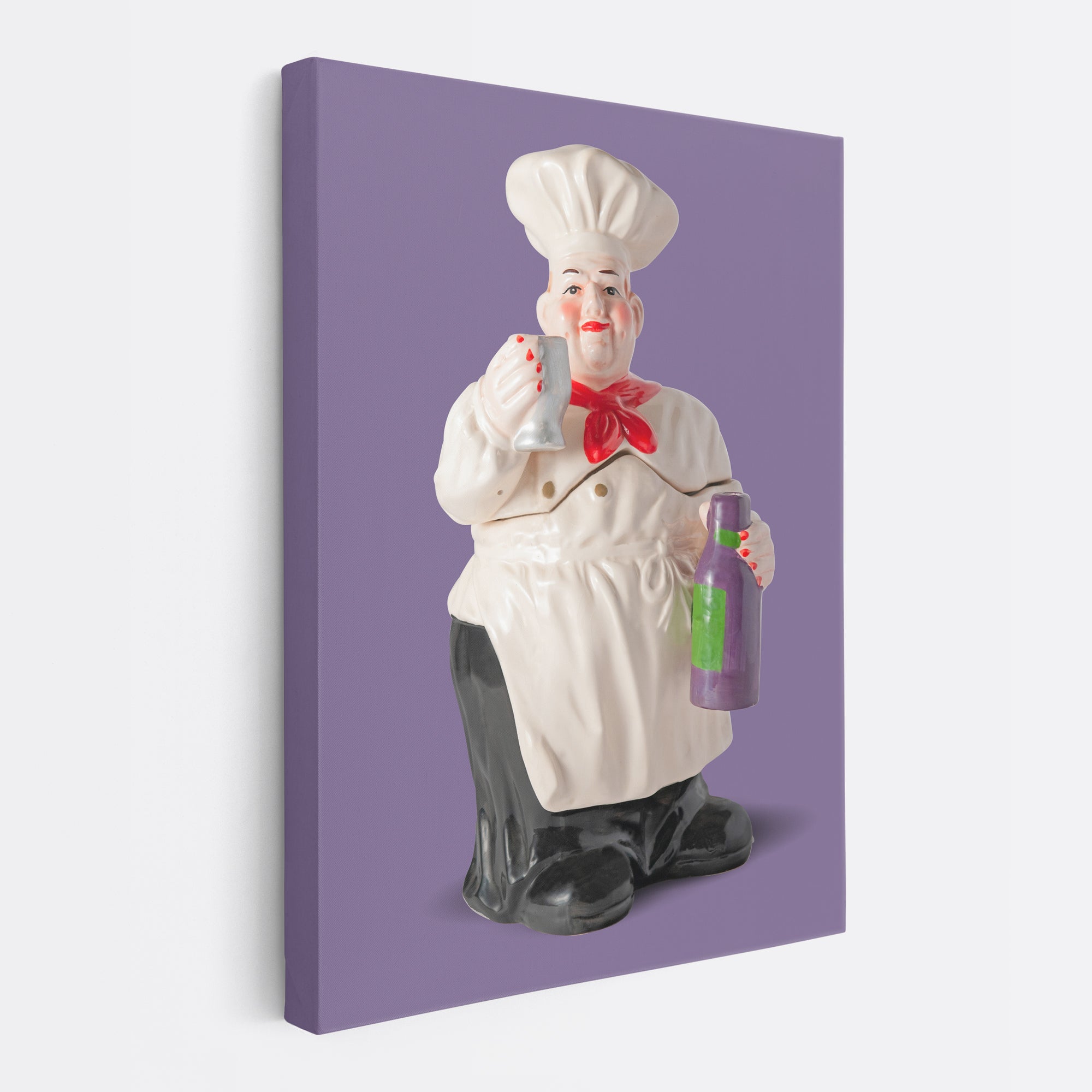 Wow! How do you like Chili?? Red hot lipstick, blush and nail polish! Chili, a wine connoisseur, follows his own drummer. Chili is most likely a non-binary person with a thriving career. He is a great looking canvas print that will brighten kitchens or restaurants everywhere!