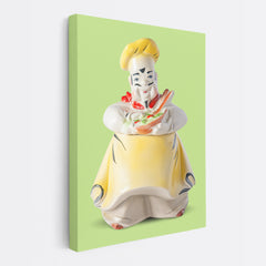I named this gorgeous cookie jar Christian because for many of us, good food is a holy experience. We’ve had this cookie jar for decades, sitting on a kitchen shelf and every time I look at him, I think, “I wish you cooked this meal but, ick, I did.” Christian Chef canvas print will brighten any kitchen or breakfast room!