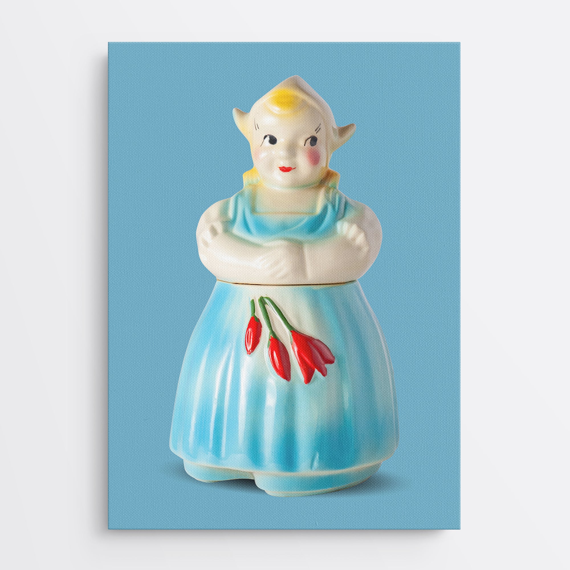 This sweet Dutch girl has stood on a shelf in our bedroom for more than twenty-five years. She is paired with Georgie Porgie, a Dutch boy, and they make an adorable couple. I’ve stared at the two of them as I’ve drifted off to sleep, often wondering why they’re still awake, staring. But they don’t creep me out, because before I know it, it's morning! Danielle and Georgie wall art will look great in a kitchen or bedroom.
