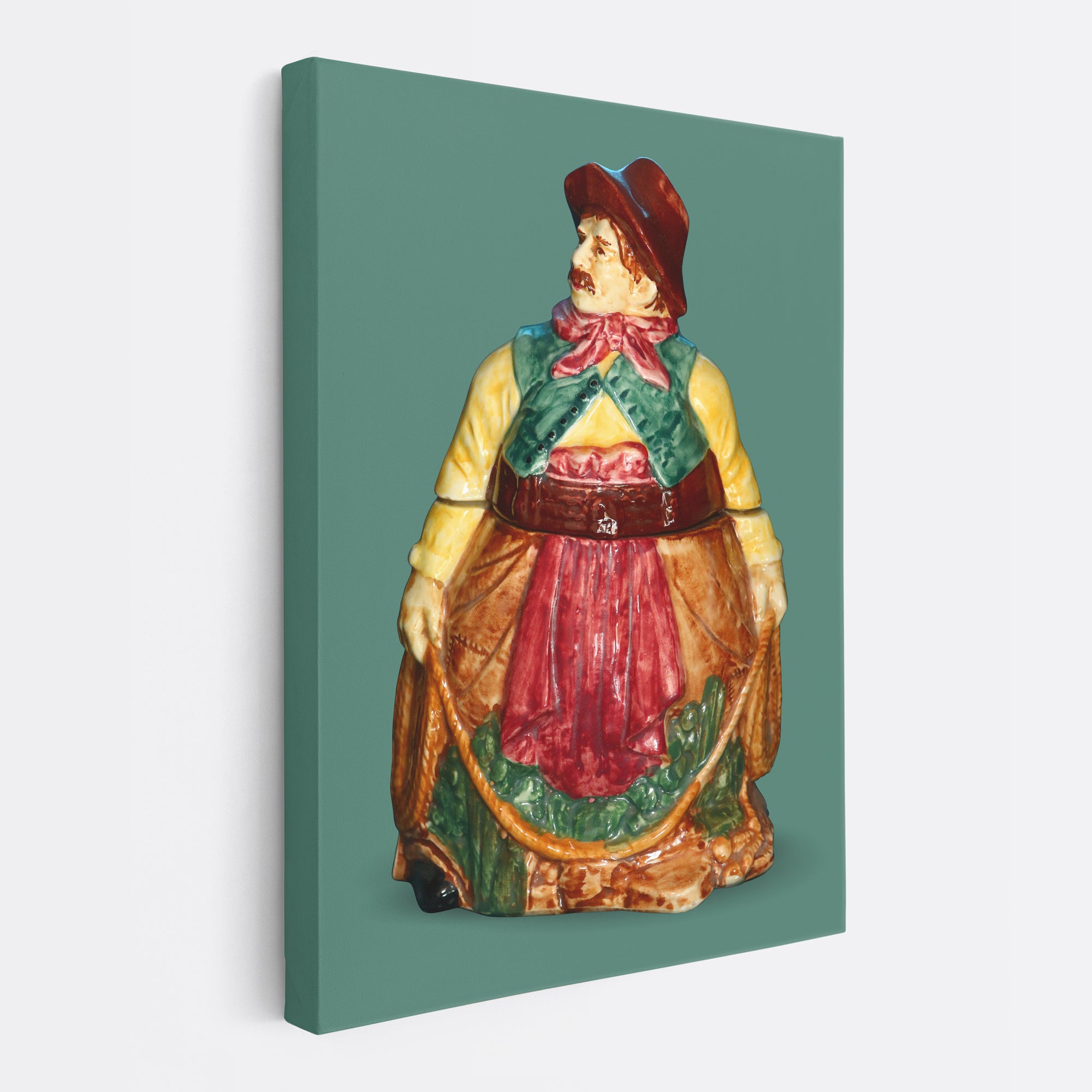 Dusty is one of my favorite cookie jars ever. His colors are drenched in pigment, unlike those of any other cookie jar. If the real Dusty were walking down the street, he would be recognizable from this cookie jar. I’ve never seen another Dusty so I don’t know his history. I do know that his canvas print will be beloved by those who are cowboys, who want to be cowboys and who love cowboys!