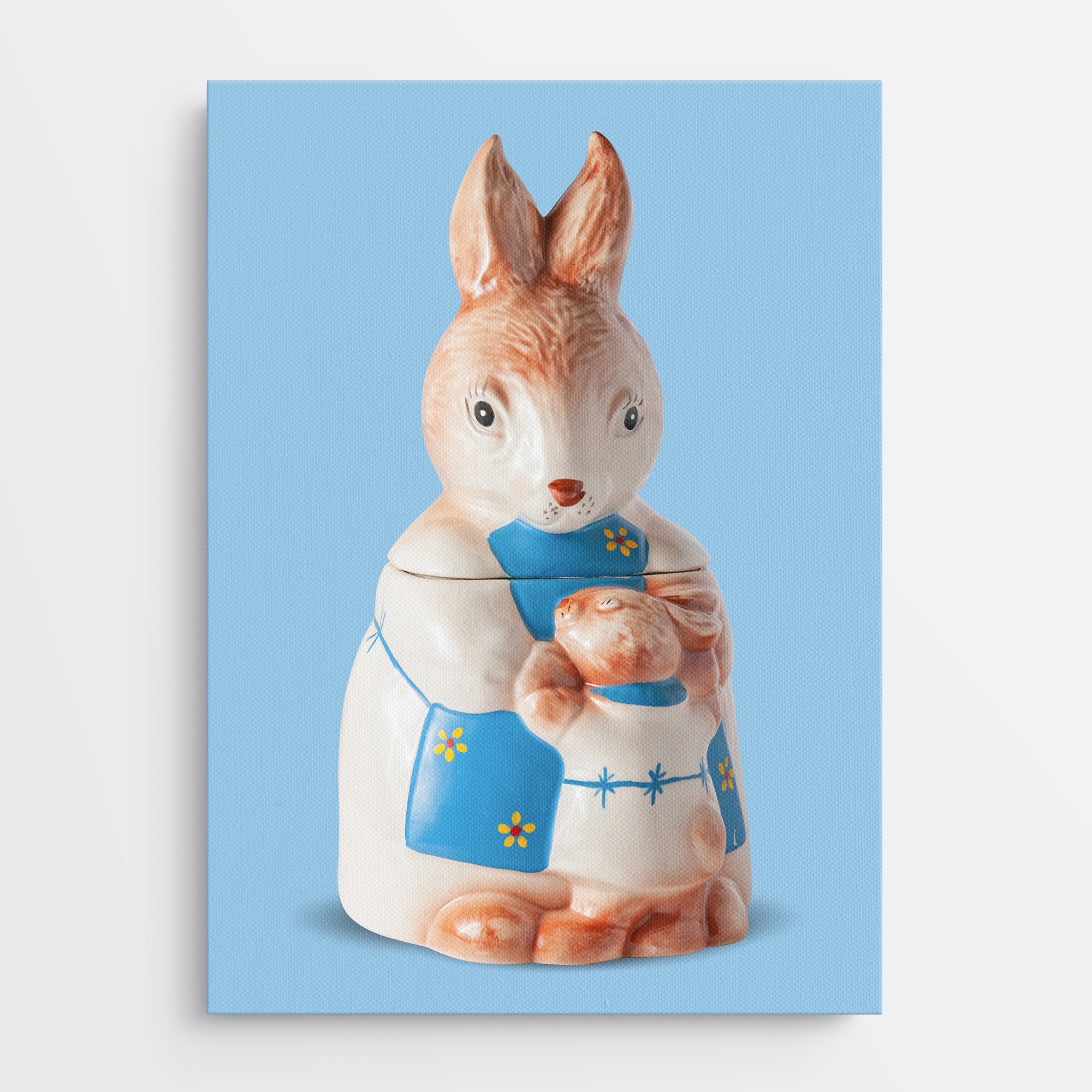 As a person who loves and keeps rabbits, this is one of my favorite cookie jars. If this lovely work of art was based on reality, there would be seven bunnies hugging Mom Liz, and another eighty-eight rabbits in concentric circles, pushing and shoving closer and closer to mommy and eventually crushing her. This is because mom rabbits produce about eight bunnies every month for a total of ninety-six baby bunnies per year. But I digress. Elizabeth Mom Rabbit will be adorable in a child’s room or in any house that cherishes bunnies.