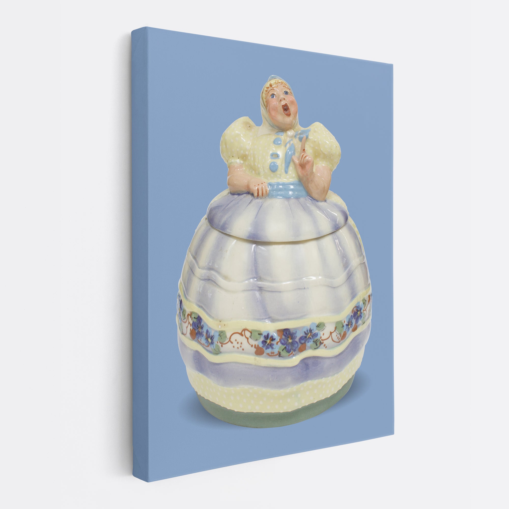 I have several cookie jars made by Finnish artist Helen Hutula. She journeyed to the U.S. in the early 1900s, becoming an accomplished ceramicist. While living in California in the 1930s and 40s, she created her namesake cookie jars. Long sought after by collectors, her jars are among the most stunning ever made and look amazing as canvas prints! Hallie will hang nicely with Helene Hutula!