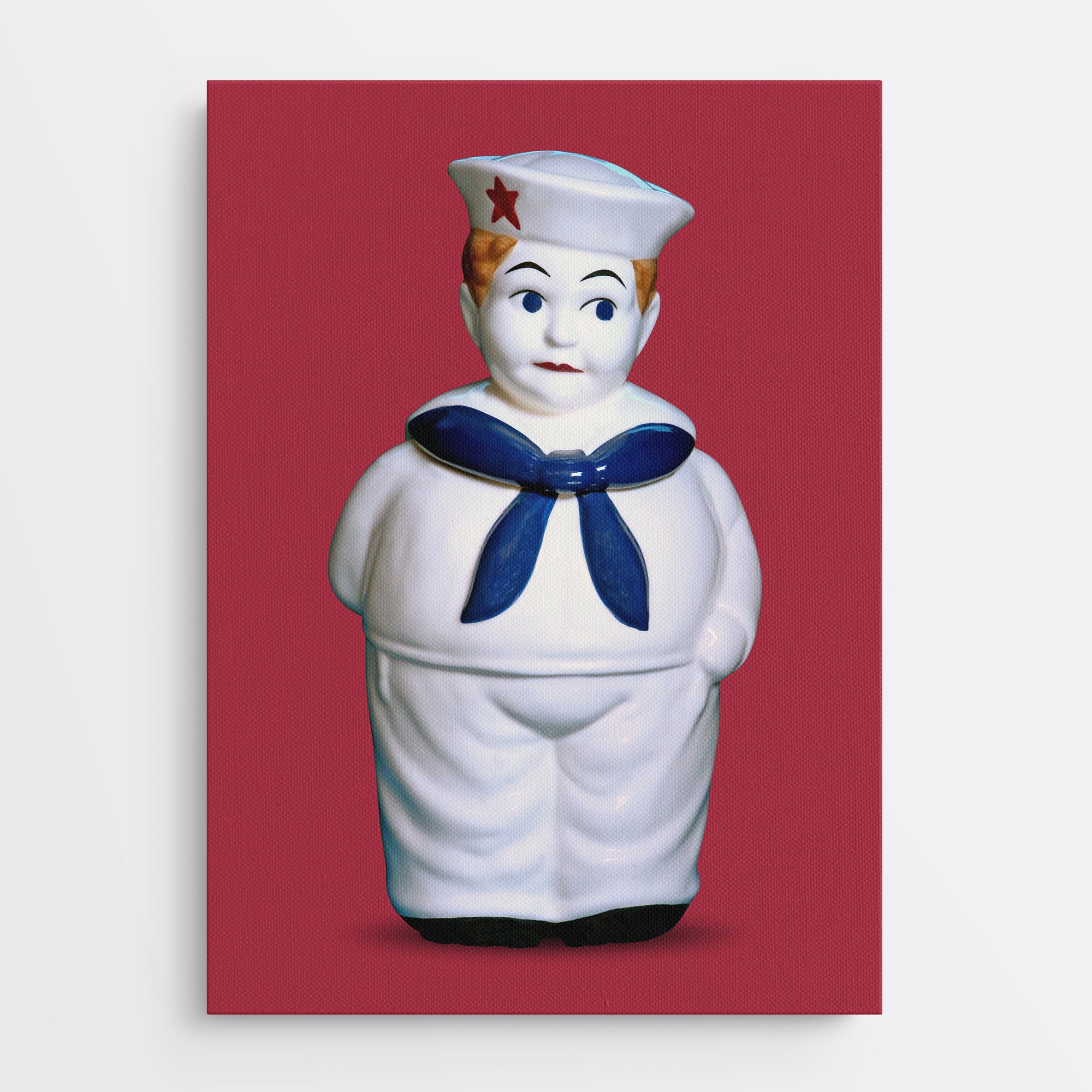 This sweet vintage cookie jar from the 1940s was probably inspired by World War II. It’s amazing any beauty can come from such ugliness as war, but this did. The sailor was named after my wonderful Uncle Harold, who was handsome and debonaire, smoked a fine cigar and always had a good word for everyone. He served in the war and came safe and sound. Our US sailor, dressed in red, white and blue, can be hung any and everywhere in homes all across this great country!