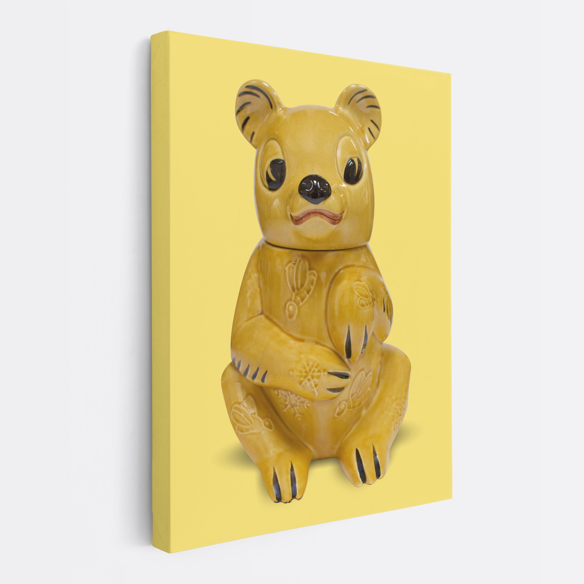Doranne of California made some of my favorite cookie jars, and Honey is one of them. Produced in the 1950s or 60s, our bear is unlike any other cookie jar bear. He is looking at something, probably honey, and his paw is about to grab it. Honey Bear will hang beautifully with the other Doranne canvas prints, or all by himself in a large size. And, by the way, his design includes pictures of honey and bees!