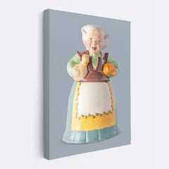 Back in the 1940s, Brayton Laguna produced a group of lady cookie jars. I think I own all of them and I can attest that each one is an individual, created after an actual person. Having Brayton Launa jars spread around the house is like having small people checking you out whenever you wander into their space. I like Liberty Duck Lady best because she is about to make a pumpkin pie and give the rind to her pet duck whom she will never eat. Liberty's canvas print is great for a kitchen.
