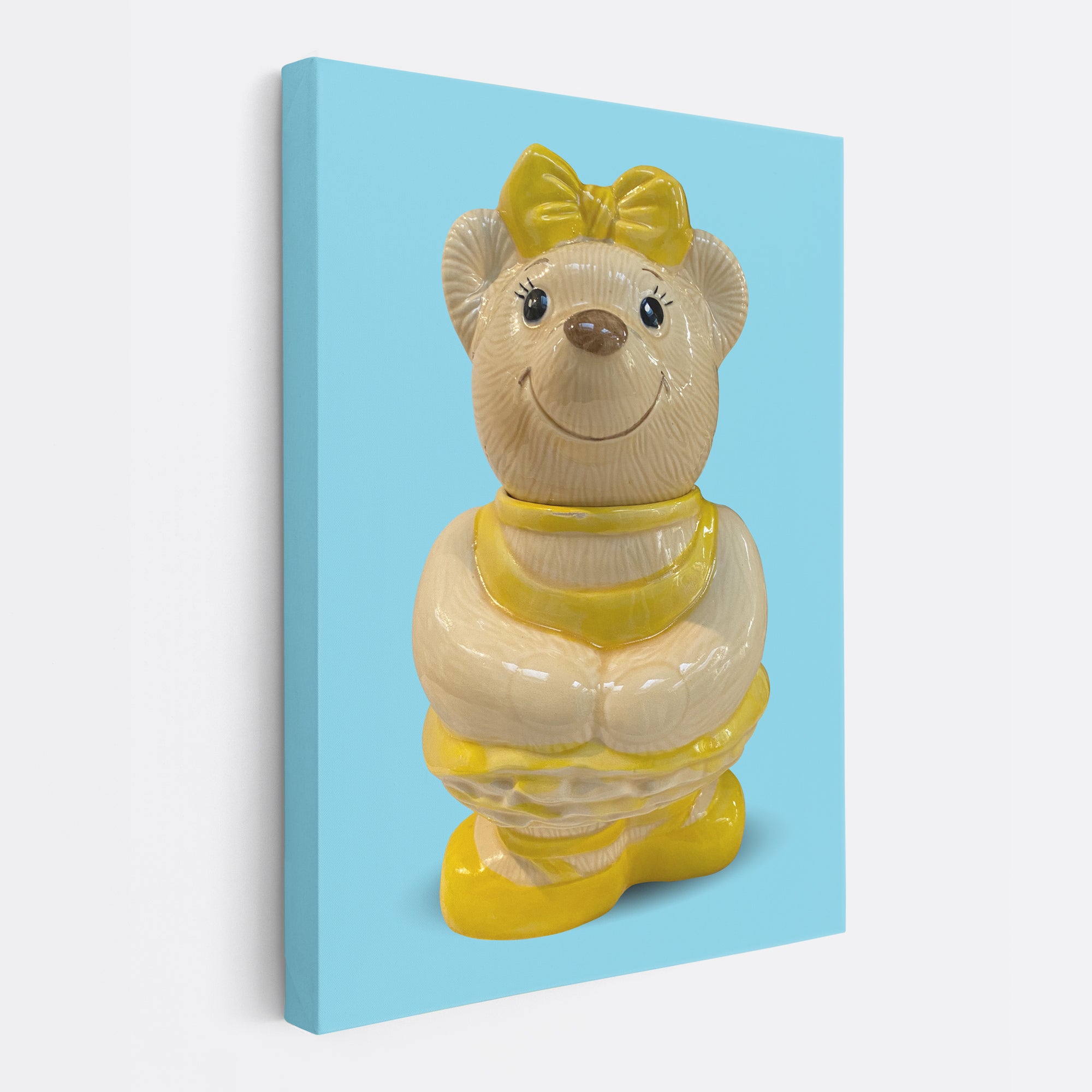 Missy, a lovely young bear, was created by Metlox Pottery in the 1960s. She is the twin of Bliss the Dancing Bear. Both girls love ballet and often dance together. However, they get annoyed because people can NEVER tell them a part. So, Missy never wears a bow around her neck in the front and Bliss always wears a bow around her neck in the front! If you look at them sideways, you can’t tell who is who. Missy, Bliss and Petunia Pig make a lovely dancing trio!!!