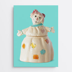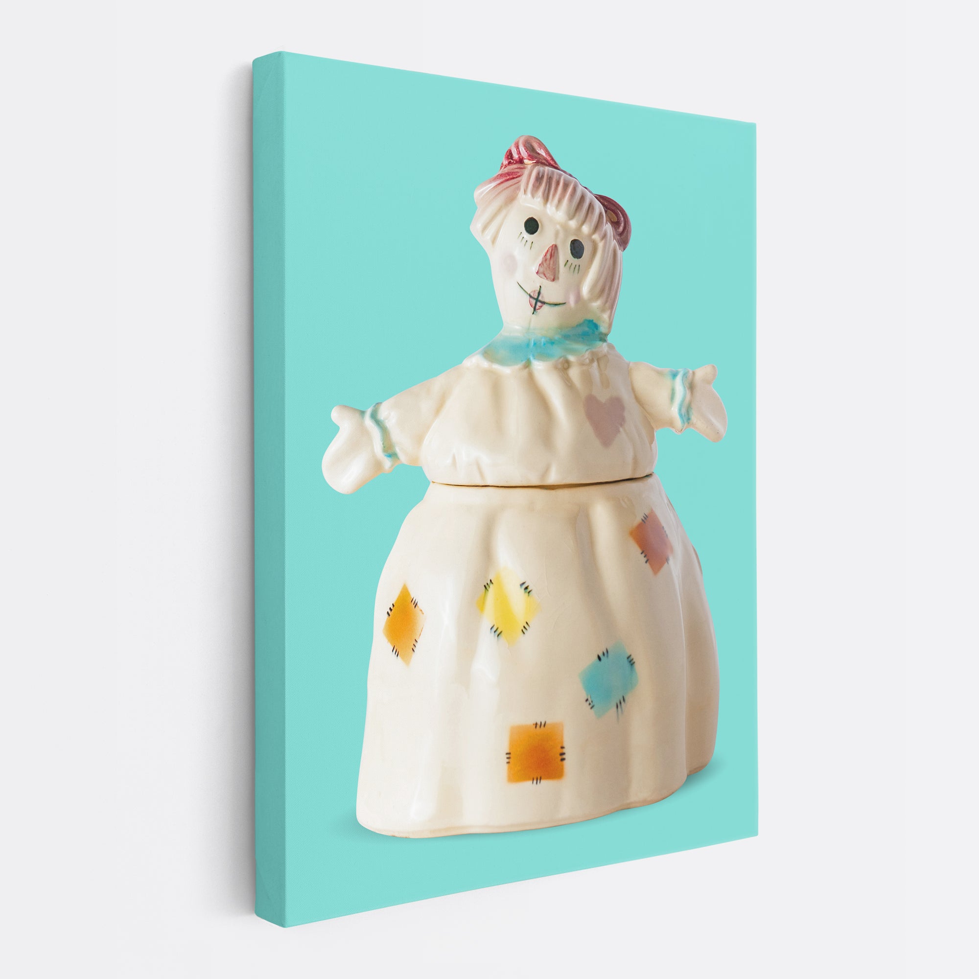 Our wild vintage Ragdoll was produced in the mid-1950s. She’s one of the few cookie jars made with hands wide open. Our family loves her because, although she is basically a small, ceramic statue, she is animated and full of life. Patches canvas print will be an adorable baby shower gift and will become a beloved image in a nursery.