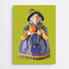Pumpkin witch barely looks like a witch at all. She looks more like the good fairy. Her outfit is glorious, with barely any Witch-black, and her pumpkin is happy. She will be enjoyed by people of all ages who love witches, not just for Halloween. She will also look great hanging with her witch sisters!