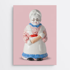 We’ve had this cookie jar forever and I’ve always called her “Rolling Pin Granny.” She deserves better, but habits are hard to change. We’ll call her Rollin’. She’s got that cozy granny vibe although the rolling pin looks a tiny bit treacherous. Rollin’ will look delightful in kitchens or breakfast rooms!
